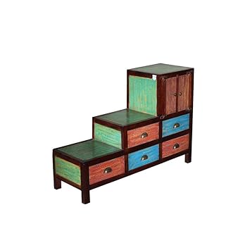 Etnicart Kommode Farbige Leiter 126x87x40 Massives Holz