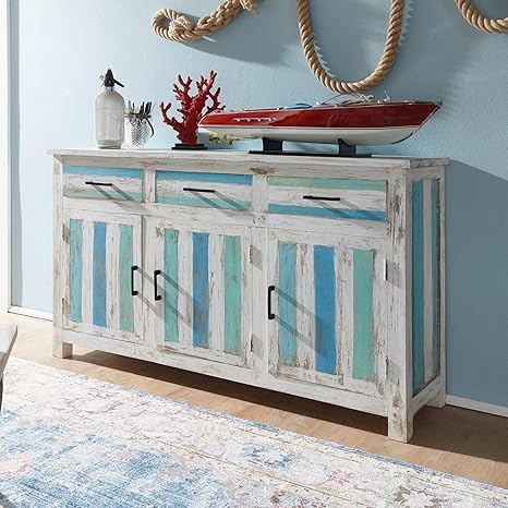 Wohnling Sideboard Wl5 587 Shabby Kommode Holz Massiv Anrichte Schubladen Bunt