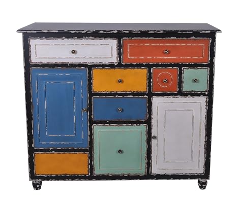 Sideboard Kommode 16 Schubladen Holz Bunt Vintage Antik Look