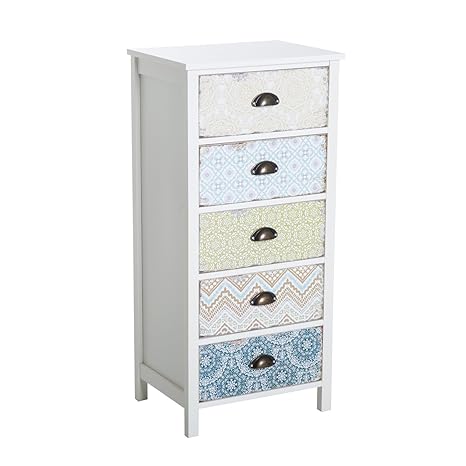 Homcom Kommode Schubladenkommode Schrank Mit 5 Schubladen Shabby Chic Holz Bunt B46 X T34 X H97 5cm