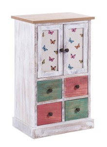 Details Zu Ts Ideen Landhaus Kommode Schrank Holz 4 Schubladen 2 Turen Shabby Grun Rot