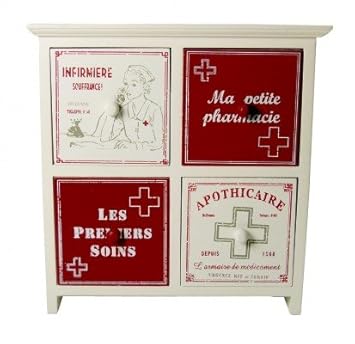 Schrankchen Pharmacie Arznei Weiss Rot Mini Kommode Holz
