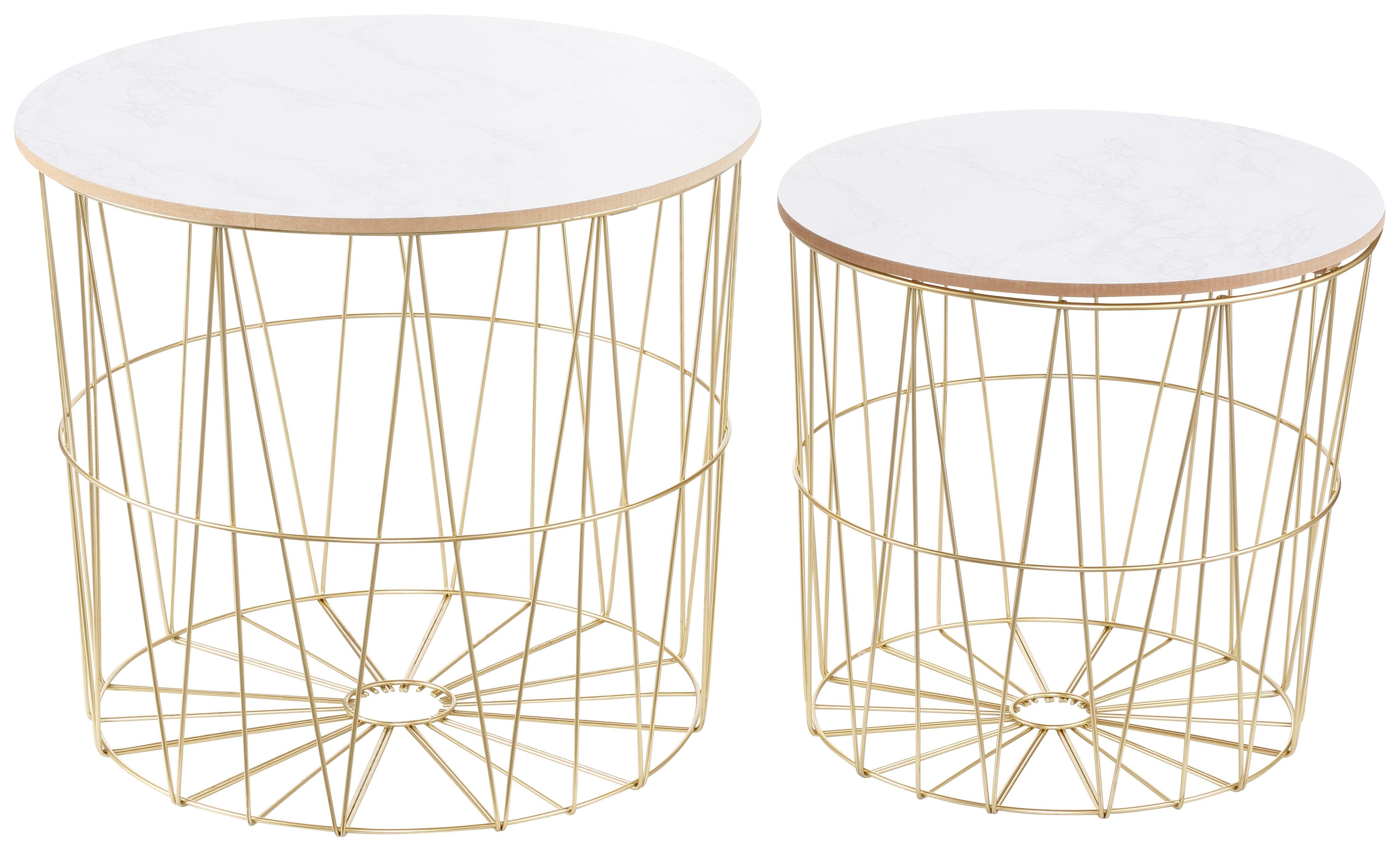 Beistelltisch Set 2 St Goldfarben Mit Platte In Marmor Optik