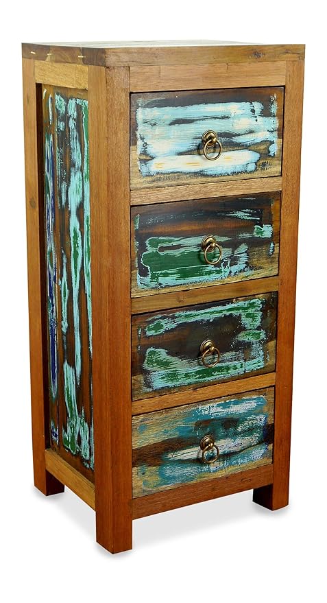 Kommode Regal Mit 4 Bunten Schubladen Recyceltes Holz