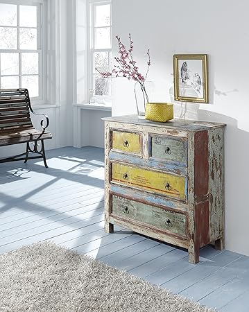 Salesfever Holz Kommode Recyceltes Holz Schrankchen Aus Massivem Holz Sideboard Bxtxh 90 X 45 X 90 Cm Massiver Wohn Schrank Mit 4 Schubladen