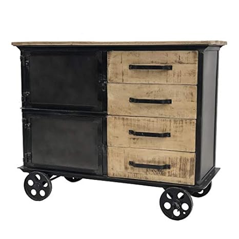 Enfilade Kommode Bahut Auf Rollen Holz Eisen Industrial
