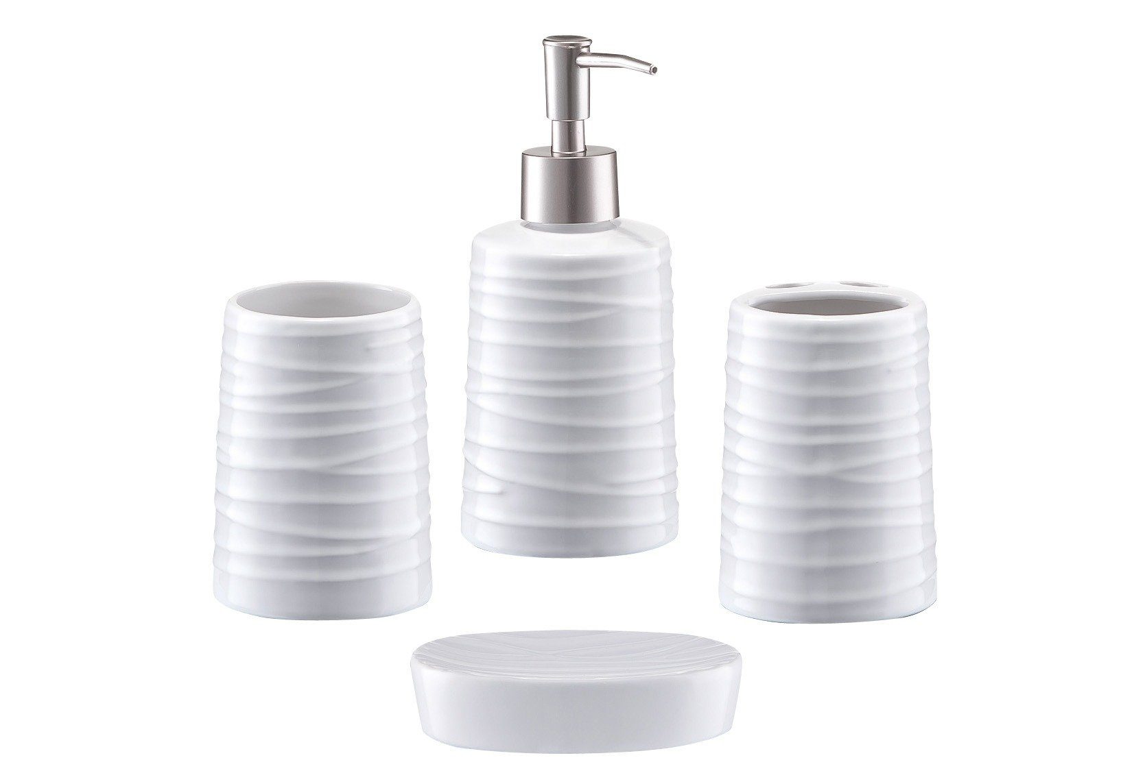 Bad Accessoires Set Cordoba Weiss 3 Teilig Zahnputzbecher Seifenspender Wc Garnitur Weiss Wenko
