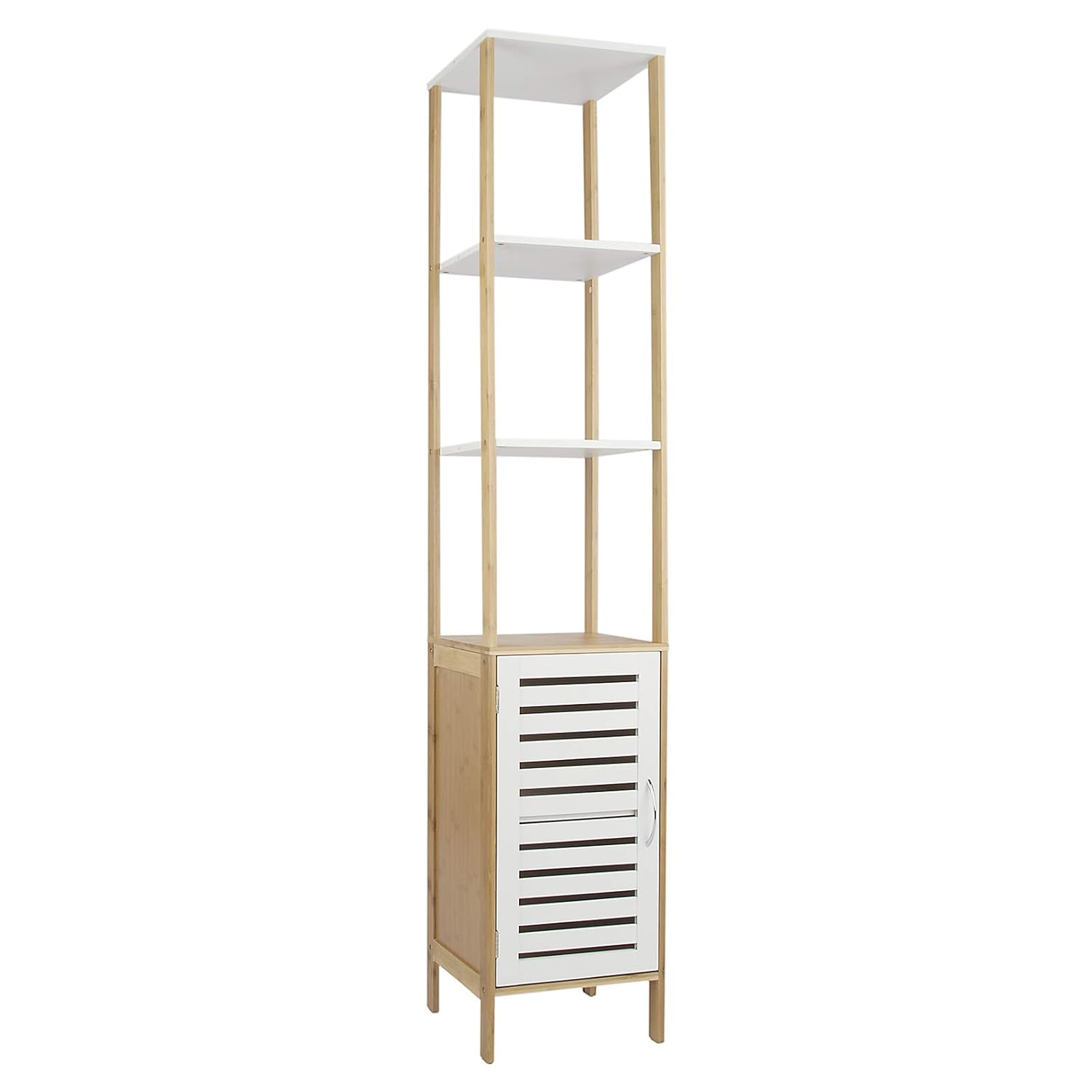 Nordic Osoltus Badregal Bad Hochschrank 190cm Wandschrank Bambus Braun Holz Weiss