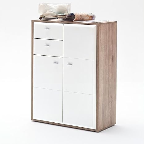 Kommode Comino Schuhkommode Weiss Hochglanz San Remo Eiche
