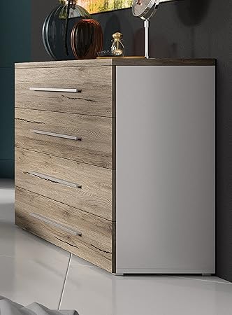 Schlafkontor Manhattan Kommode 2 Turig Mit 4 Schubkasten Korpus Und Absetzungen Dekor Eiche San Remo Hell Front Dekor Weiss