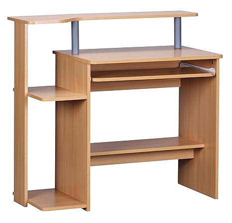 Wohnling Computertisch Dennis Buche Mit Tastaturauszug Laptop Tisch Ohne Rollen Mit Aufsatz Pc Tisch Mit Drucker Ablage Platzsparend Schreibtisch