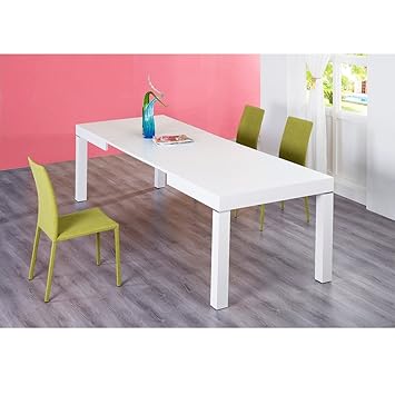 Hochglanz Weiss Esstisch Cangas 90x160x75 Ausziehbar Auf