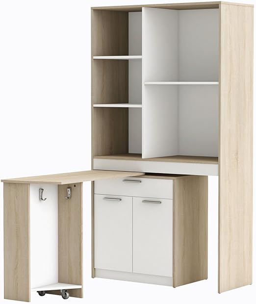 Habeig Hochschrank Cousine 718 Kuchenschrank Kuchenregal Buffetschrank Weiss Sonoma Eiche
