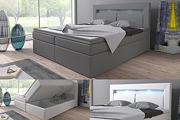 Selsey 180 X 200 Cm Boxspringbett Polsterbett Torlee Mit Bettkasten Und Rgb Beleuchtung Grau Kunstleder