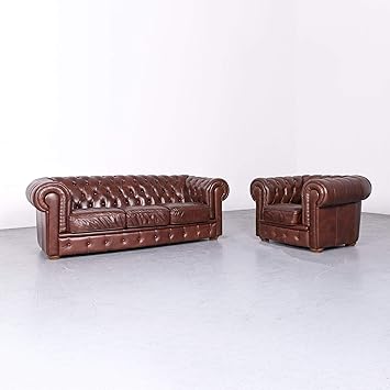 Chesterfield Leder Sofa Sessel Garnitur Braun Echtleder