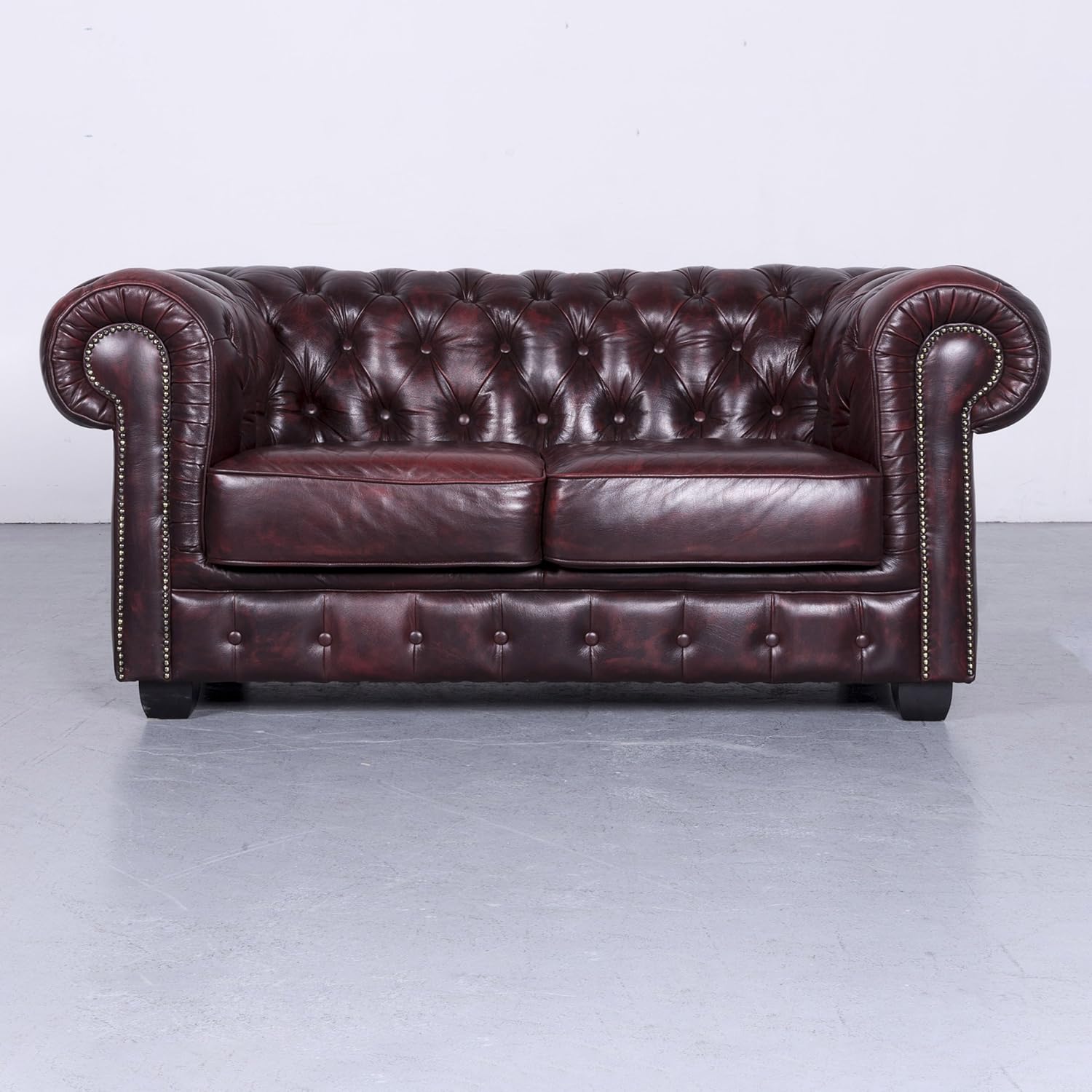 Chesterfield Sofa Rot Braun Leder Zweisitzer Couch Echtleder