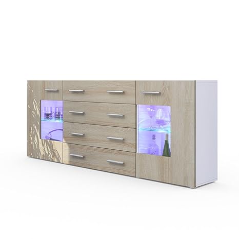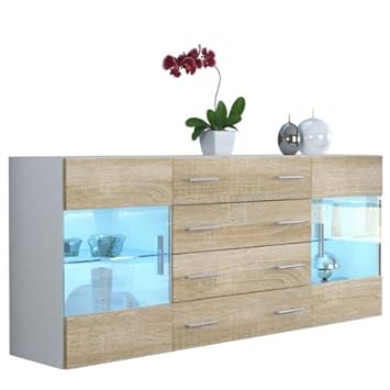 Sideboard Spot Weiss Hochglanz Sonoma Eiche Sagerau Hell Led
