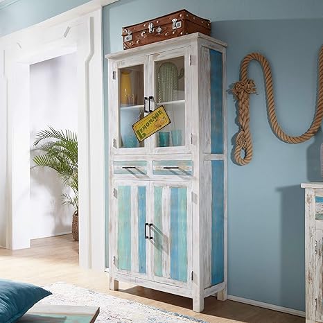 Finebuy Highboard Pintu Massivholz 90x190x40 Cm Anrichte