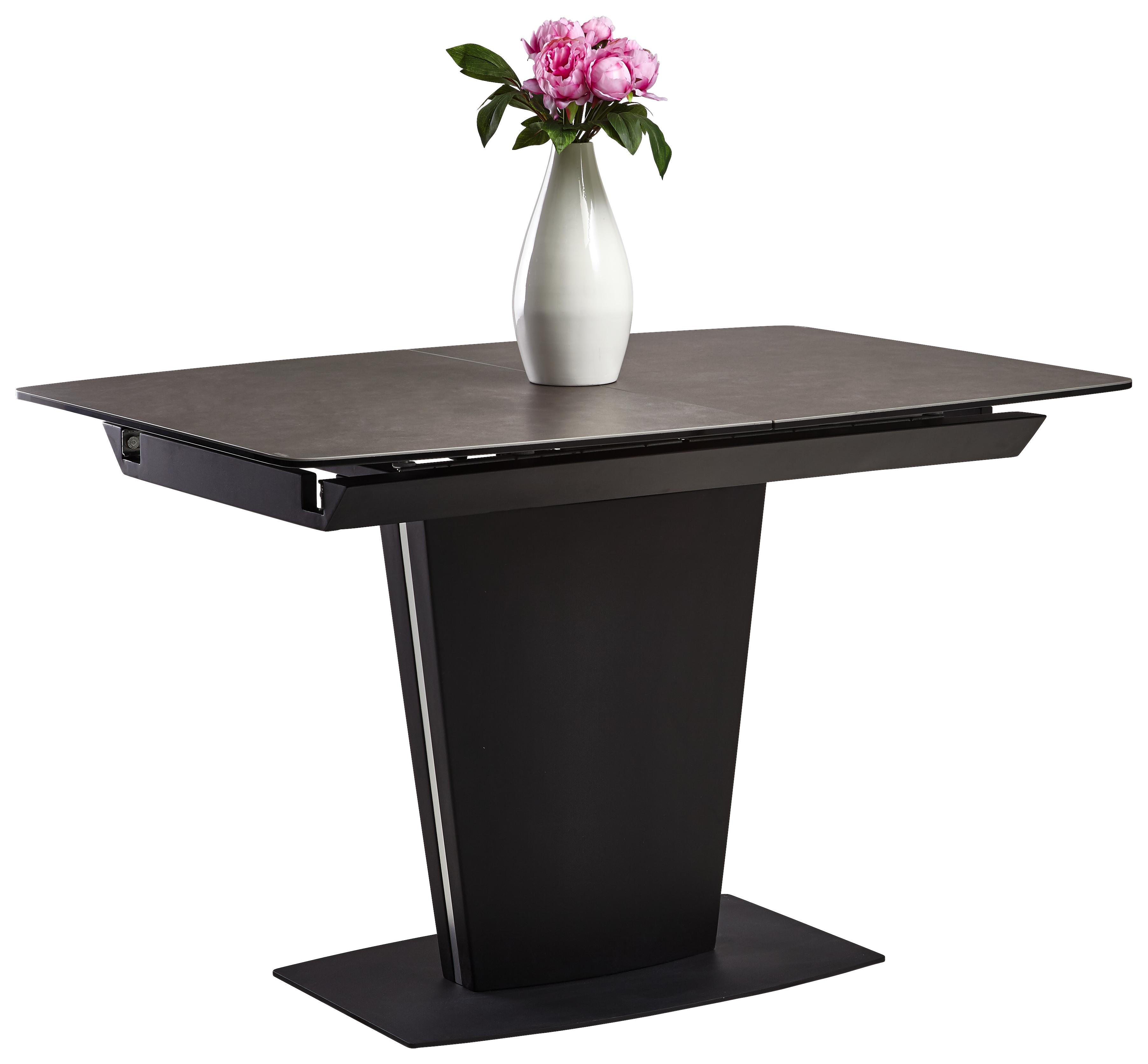 Esstisch Leandro In Matt Weiss Echt Lack Mit Keramik Tischplatte In Grau Saulentisch Ausziehbar 180 230 X 95 Cm