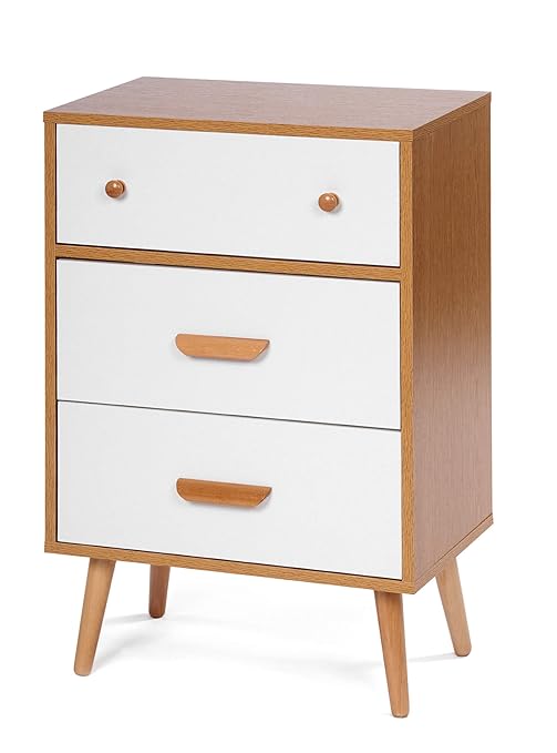 Kommode 3 Schubladen Tur Schrank Weiss Braun Landhaus Holz
