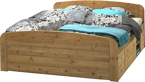 Bett Mit Schubladen 140x200 Holzbett Kiefer Massiv Gelaugt