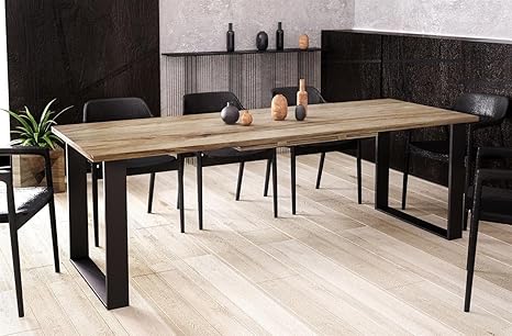 Stones Bridge Tisch Ausziehbar Holz Metall Eiche Schwarz