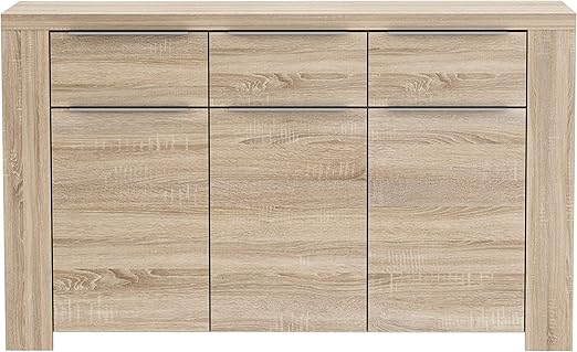 Sideboard Top Als Praktische Kommode Sonoma Eichefarbene Weisse Kunststoffoberflachen Drei Turen Drei Schubladen
