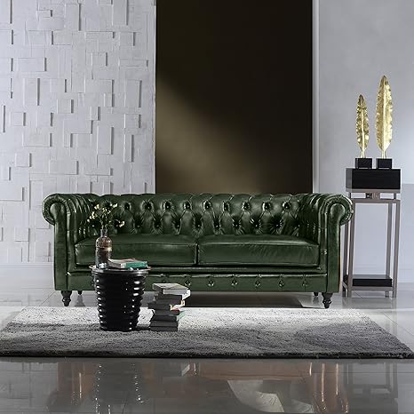 Amazon Com Peyton Sloped Arm Chesterfield Sofa Green