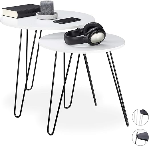 Relaxdays Beistelltisch 2er Set Rund Satztische Flur