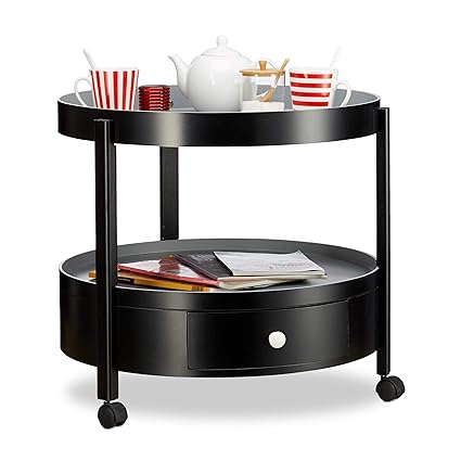 Relaxdays Beistelltisch Rund Schubfach Und 2 Ablagen Mobiler Couch Oder Nachttisch Hxo 56 5 X 62 Cm Schwarz Grau
