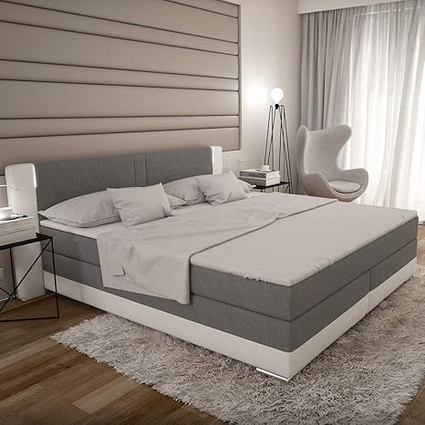 Bargo Boxspringbett 180x200 Cm Grau Weisses Polster Bett In Stoff Kunstleder Kombi Mit Integrierter Led Beleuchtung Edles Designer Bett Inkl