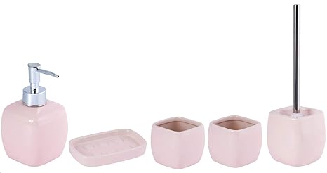 Msv Badezimmer Set 5 Teiliges Badzubehor Aus Keramik Louise Seifenspender Wc Burste Seifenschale Und Zahnputzbecher Pastell Rosa