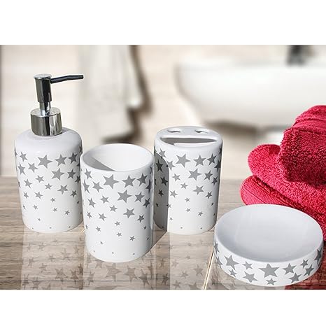 Bada Bing 4tlg Weiss Badezimmer Set Stern Keramik