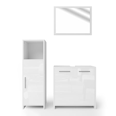 Vicco Badmobel Set Kiko Weiss Hochglanz Grau Beton Badspiegel Unterschrank Bad Hochschrank Bad Midischrank Weiss Hochglanz Set 3