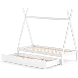 Vitalispa Kinderbett Tipi Hausbett Weiss Bett Kinderhaus Zelt Bettschublade 90x200cm