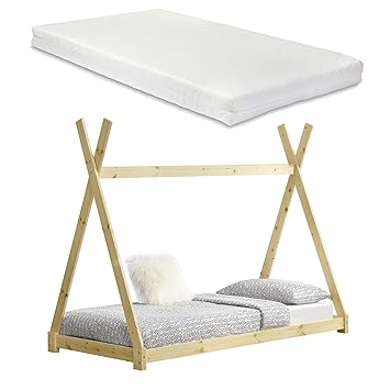 En Casa Kinderbett Mit Matratze 90x200cm Tipi Design Kiefernholz Bett Holzbett Hausbett Kaltschaummatratze Oko Tex Standard 100 Allergikergeeignet