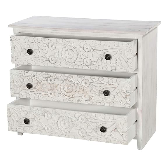 Schubladen Kommode Weiss Mangoholz Shabby Chic Vintage Massiv 90x75x40 Cm Handgeschnitzt Weiss Gekalkt