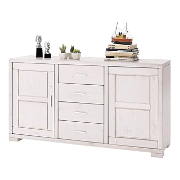 Finebuy Sideboard Peso Kommode Anrichte Holz Massiv Landhaus Kiefer Weiss Schrank