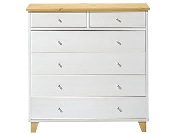 Kommode Kiefer Massiv Lackiert Braun Weiss